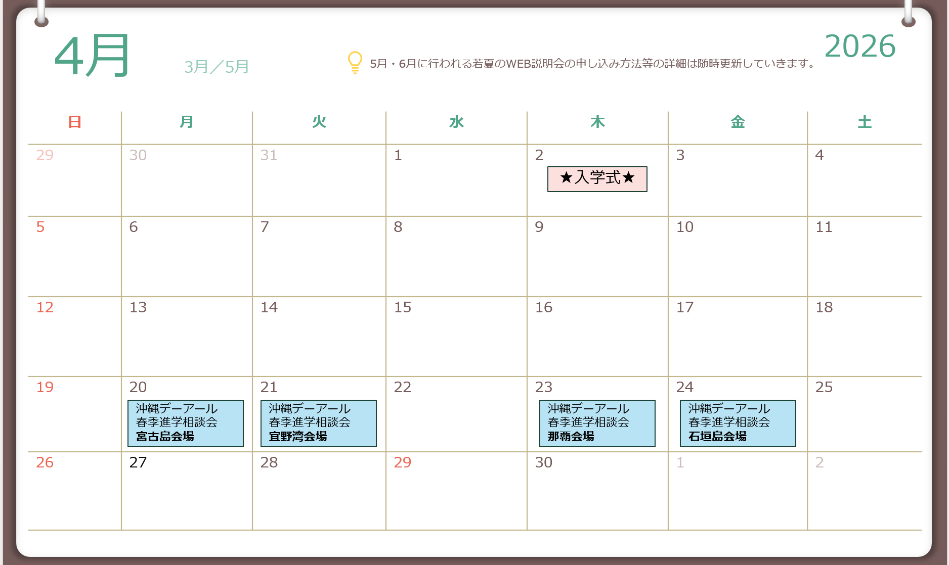 入試カレンダー